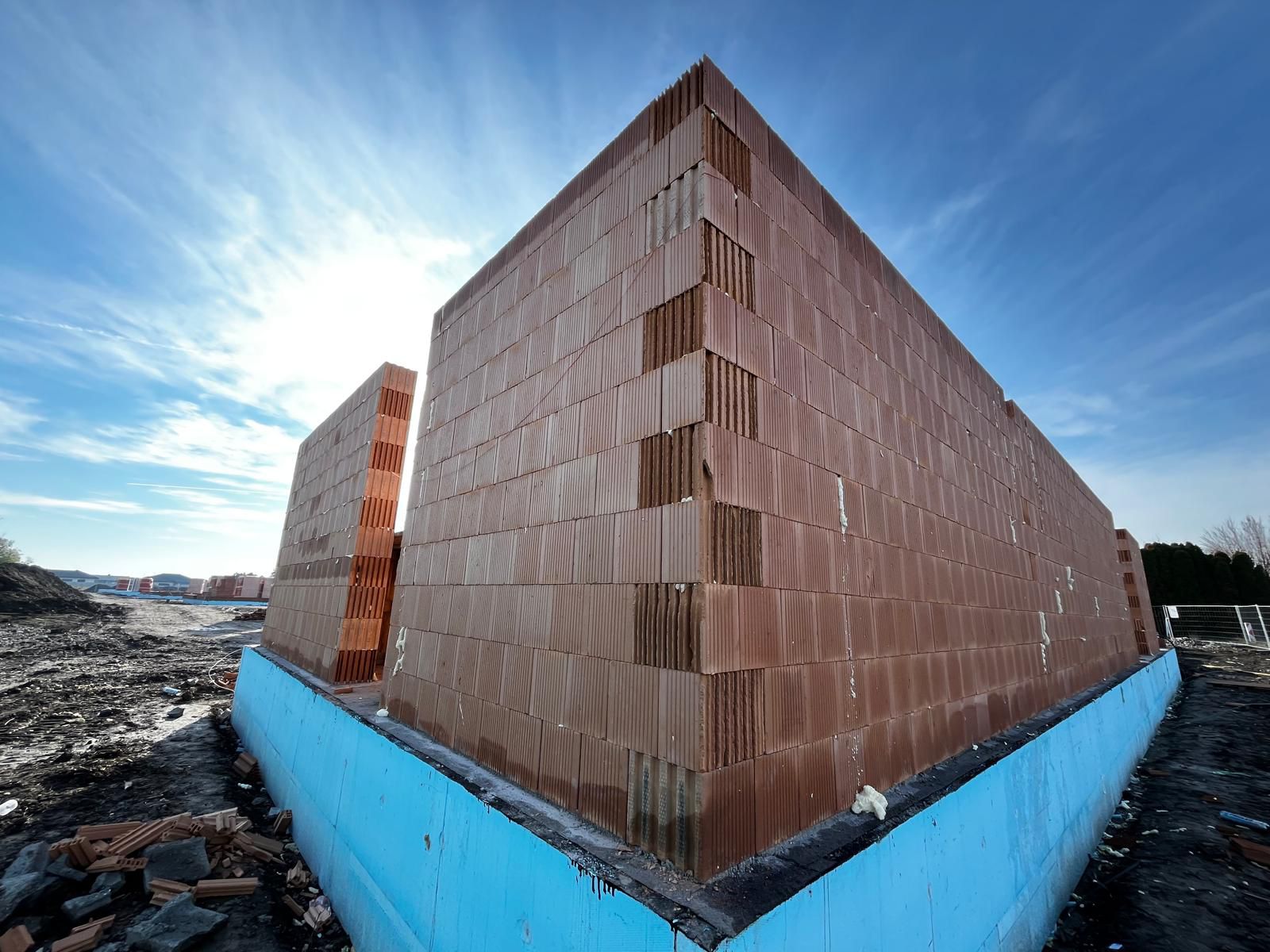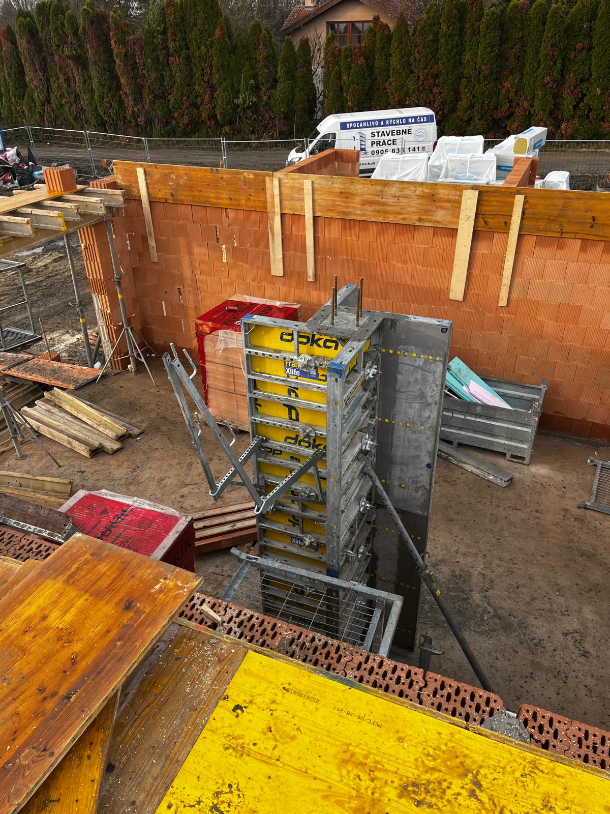 Momentálne prebieha murovanie obvodových a nosných stien. Po dokončení tejto etapy bude nasledovať debnenie, zhotovenie výstuže a následná betonáž železobetónových stropných dosiek