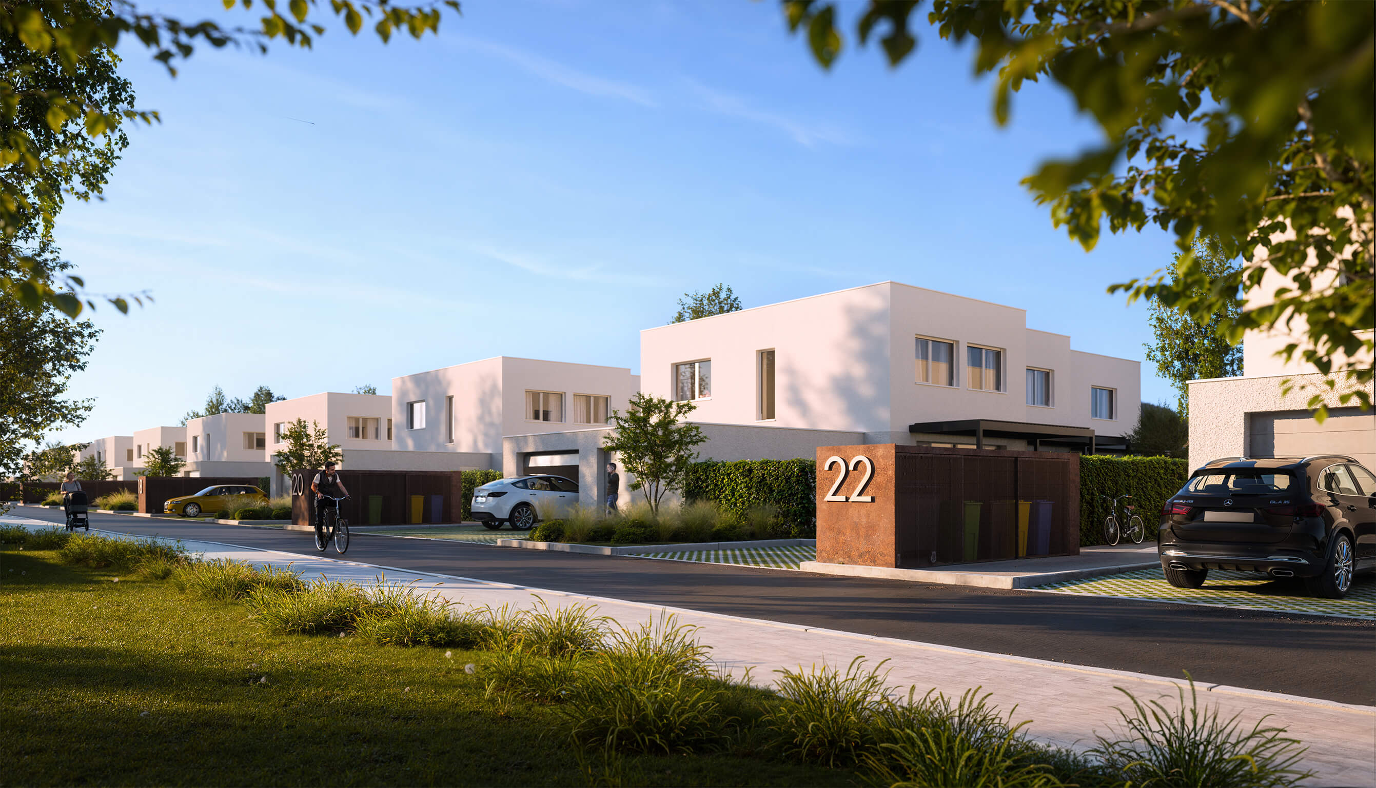 Projekt sa nachádza v slepej ulici, bez tranzitnej dopravy a to prináša prirodzený pokoj pre rodiny aj deti.